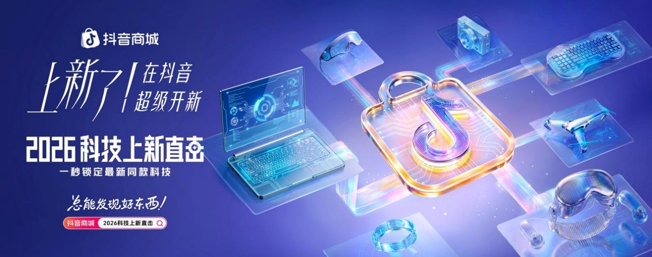 抖音商城营销IP「上新了!在抖音」敏锐捕捉到这一全球科技风向,抓住“开年焕新”这一黄金窗口,于1月5日至18日推出「2026科技上新直击」活动,构建了一个与全球科技浪潮同频共振的“上新场”。